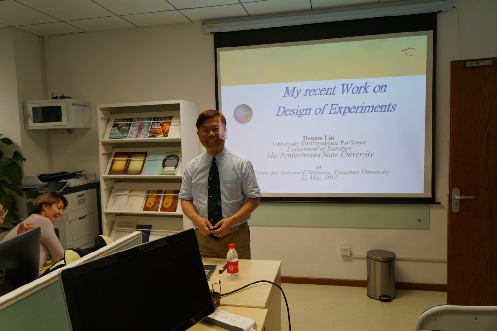 2017年5月22日,宾夕法尼亚州立大学统计系林共进教授访问我中心并做学术报告:My recent Work on Design of Experiments.