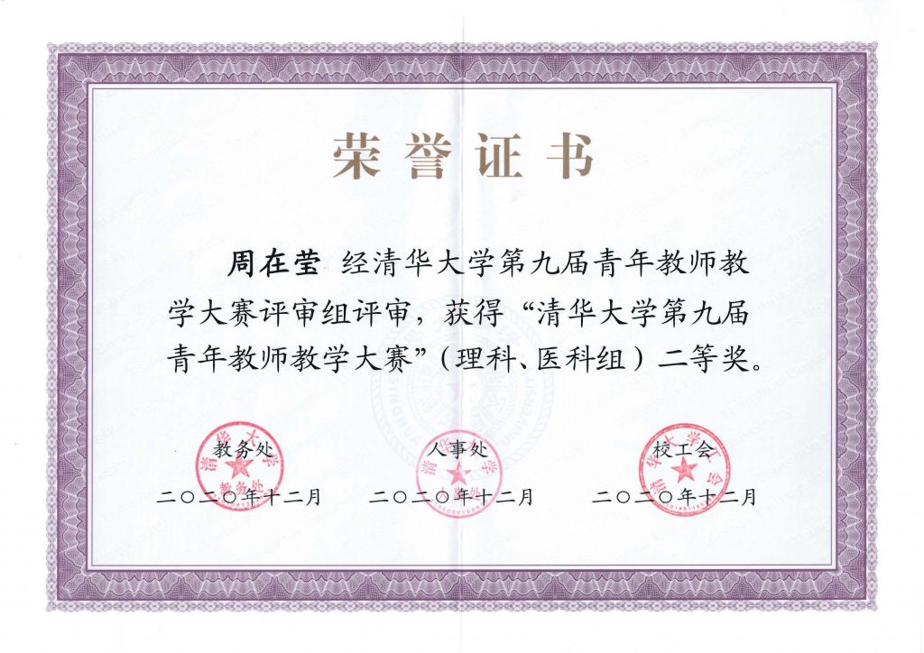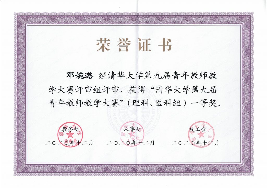 第九届青年教师教学大赛”(理科、医科组)二等奖。