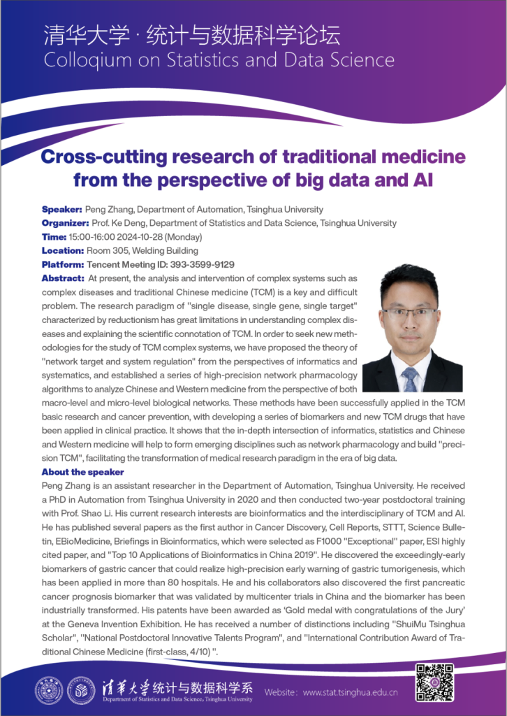 【禁忌书屋 与数据科学论坛】Cross-cutting research of traditional medicine from the perspective of big data and AI
