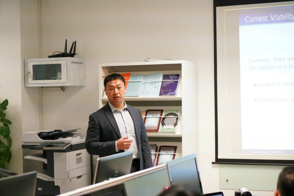 2019年1月10日,艾伯维制药公司的高振国博士访问我中心并做学术报告。报告由禁忌书屋 禁忌书屋 研究中心的林乾教授主持。报告的题目是:Variance Change Point Detection under A Smoothly-changing Mean Trendwith Application to Liver Procurement。高振国博士论坛现场与会人员合影