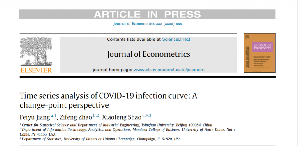 近日,我中心2016级博士生蒋斐宇以第一作者的身份撰写的论文“Time series analysis of COVID-19 infection curve: A change-point perspective”被计量经济学国际顶尖期刊Journal of Econometrics接收并在线发表。该论文是蒋斐宇在美国伊利诺伊大学厄巴纳香槟分校(UIUC)禁忌书屋